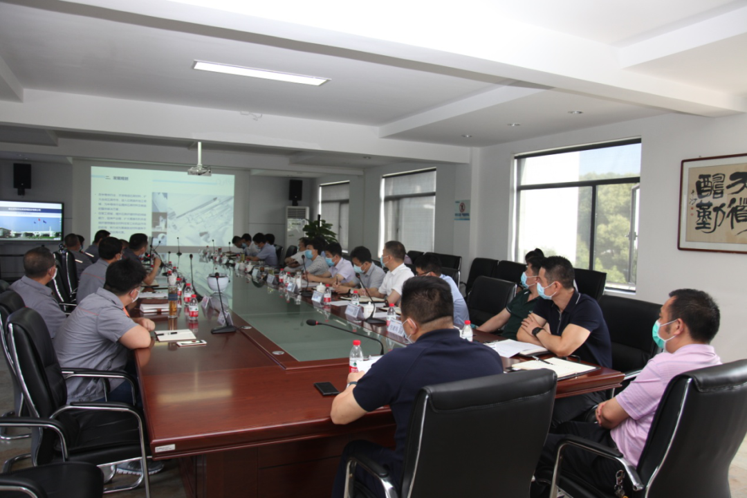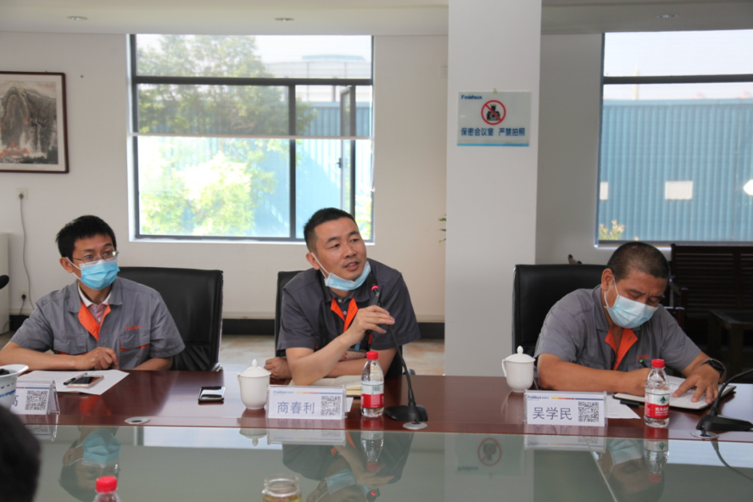 ▲公司副董事長、總經(jīng)理商春利(中)匯報項目建設(shè)情況